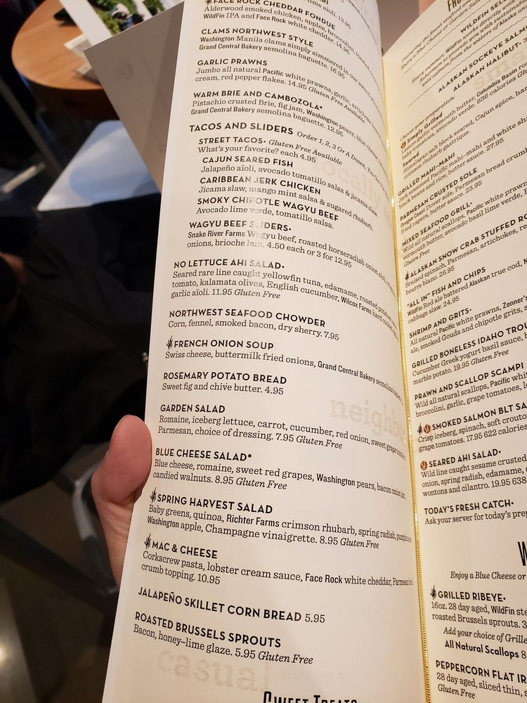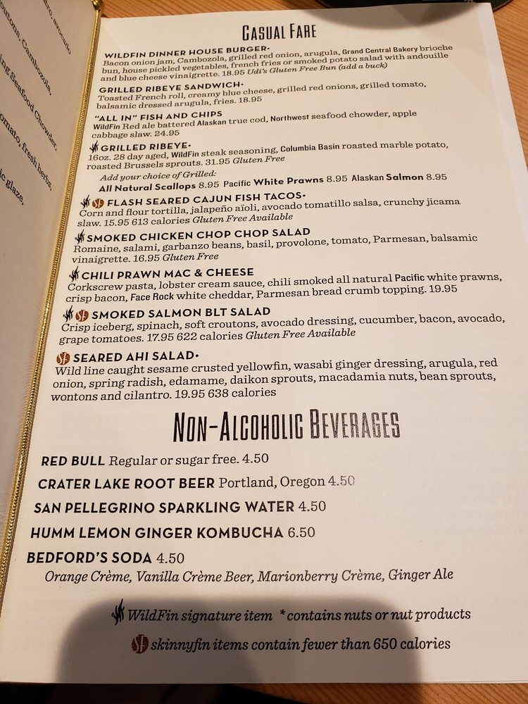 Premium Northwest pasture-raised Angus beef, 28-day aged, WildFin steak seasoning, Columbia basin marble potatoes, seasonal vegetables. Gluten-free. Add extras for an additional charge.